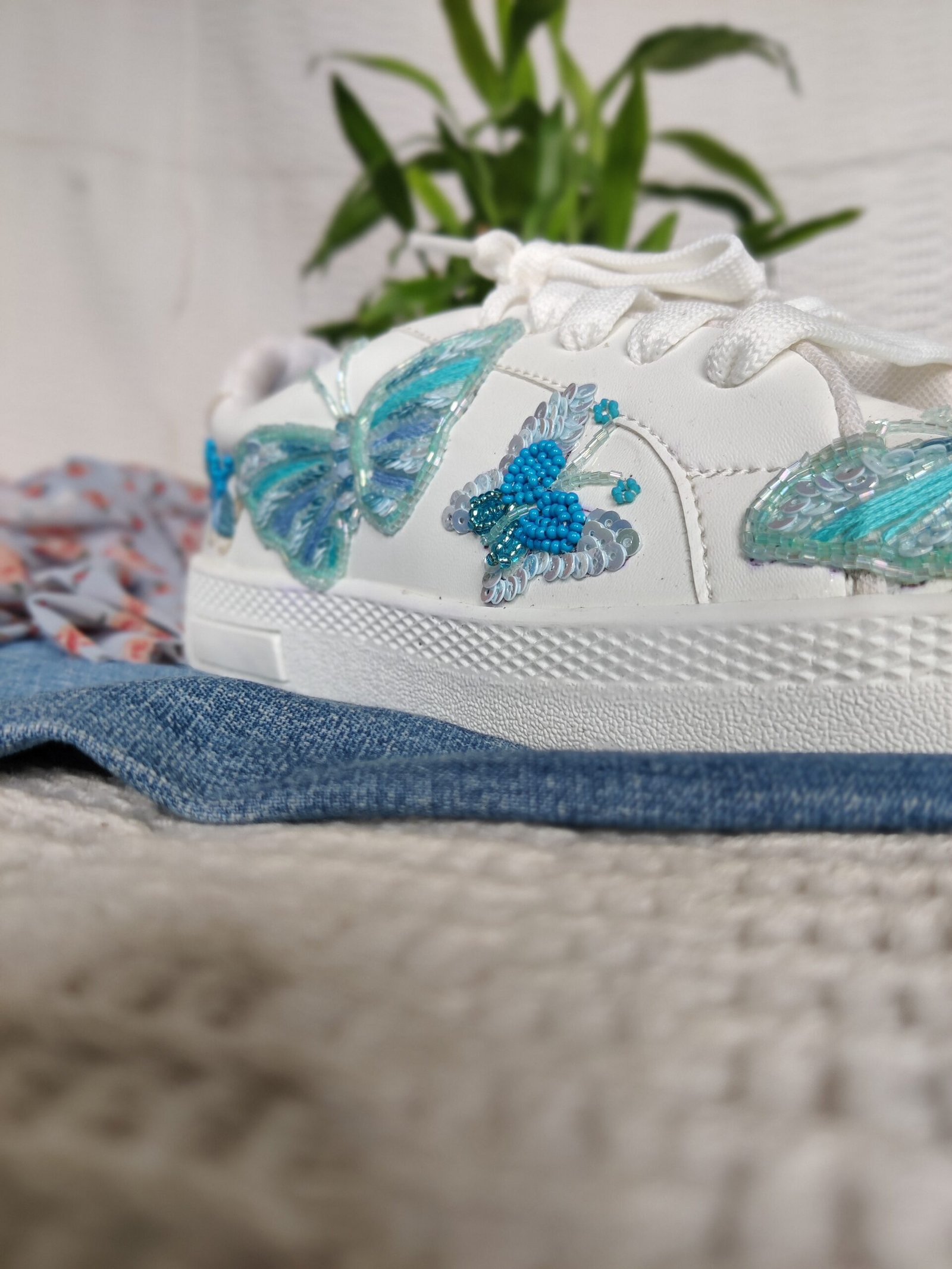 Customized shoes for casual daily wear ,the  work customized on shoes is to pair with daily outfits e.g.,denims,co-ord sets etc.  We customize work on the shoes as per customers outfit/requirement or refrence . You can provide your basic shoes to us for the work ,the shoes can be used or unused. If you want shoes …