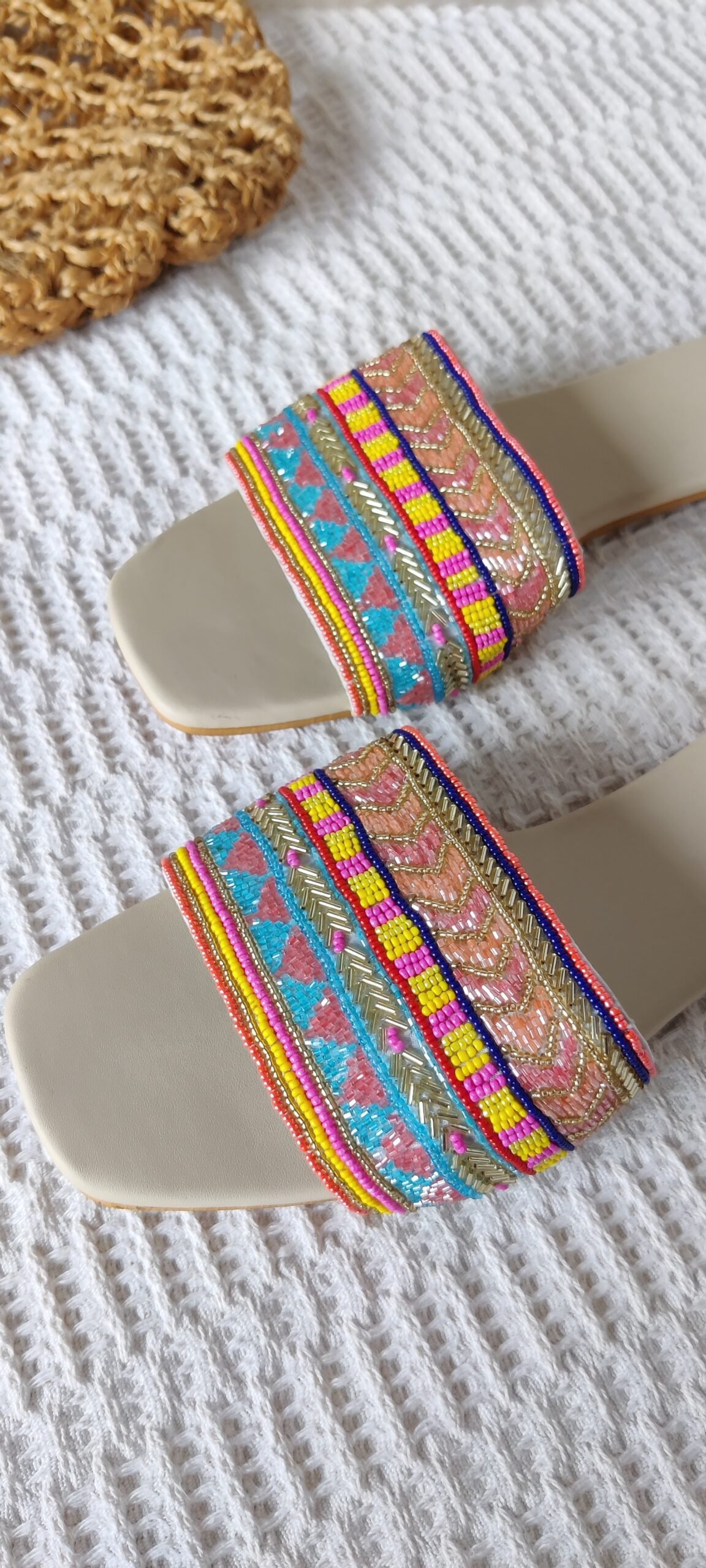 Detangling colourful beads with ARYA SLIDDERS ,handcrafted for ethnic and semi ethnic attires . Using all the colourful beads embellished in ARYA SLIDDER to pair your attires.