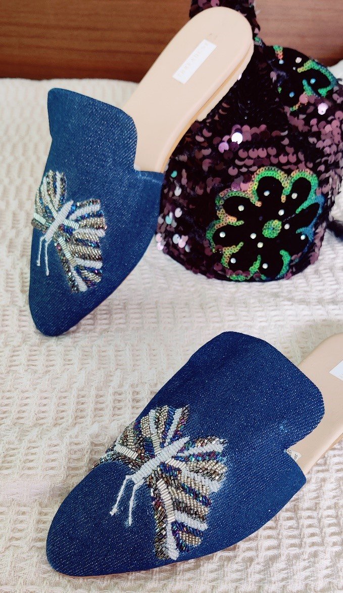 Is your casual attire mules handcrafted with denim fabric and and give a touch of embroidery in the middle of vamp which makes it perfect for your evening parties or the high tea ☕