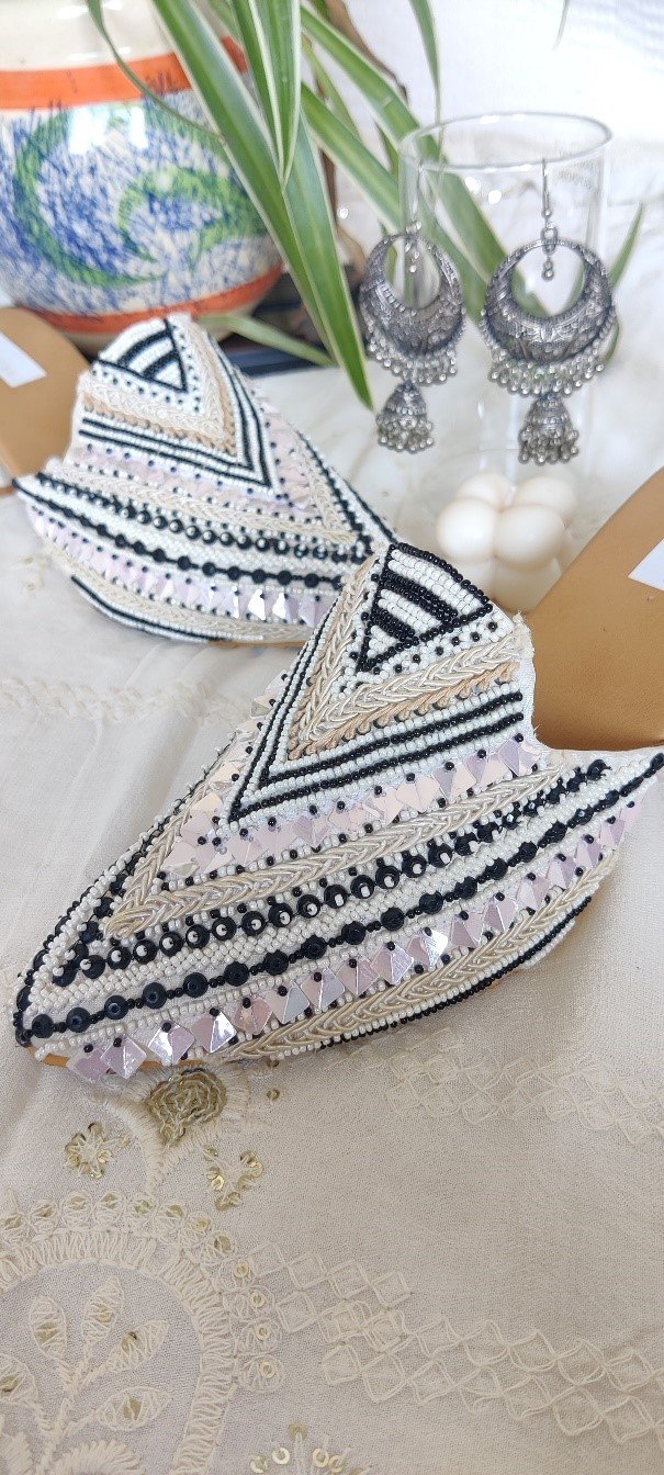 M O N O C H R O M E D R A M A is perfect balance of ivory ,black and hints of Silver. Mono heels areperfect for your dinner dates and social pictures✨