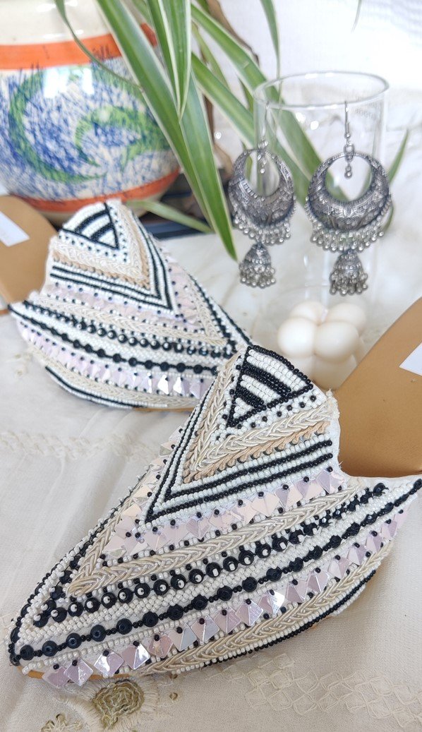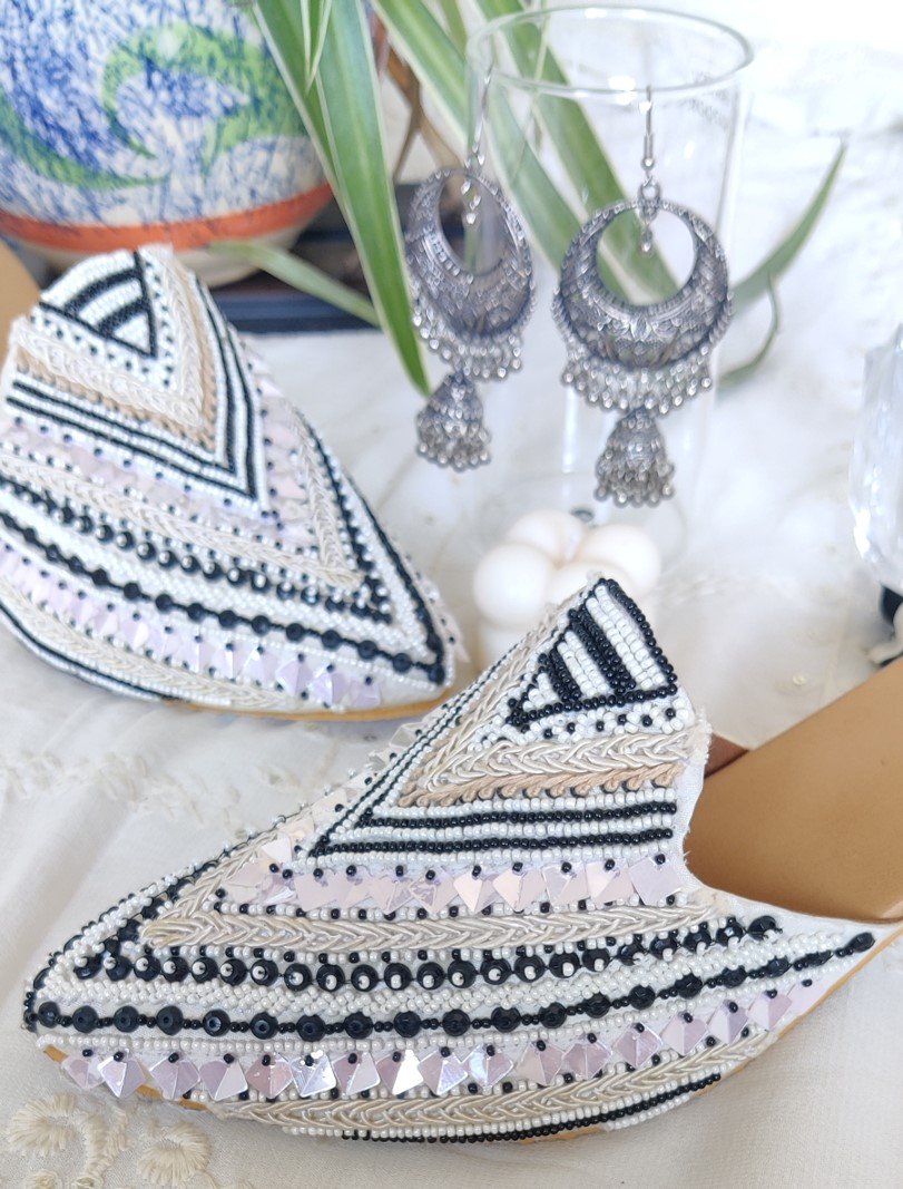 M O N O C H R O M E D R A M A is perfect balance of ivory ,black and hints of Silver. Mono heels areperfect for your dinner dates and social pictures✨